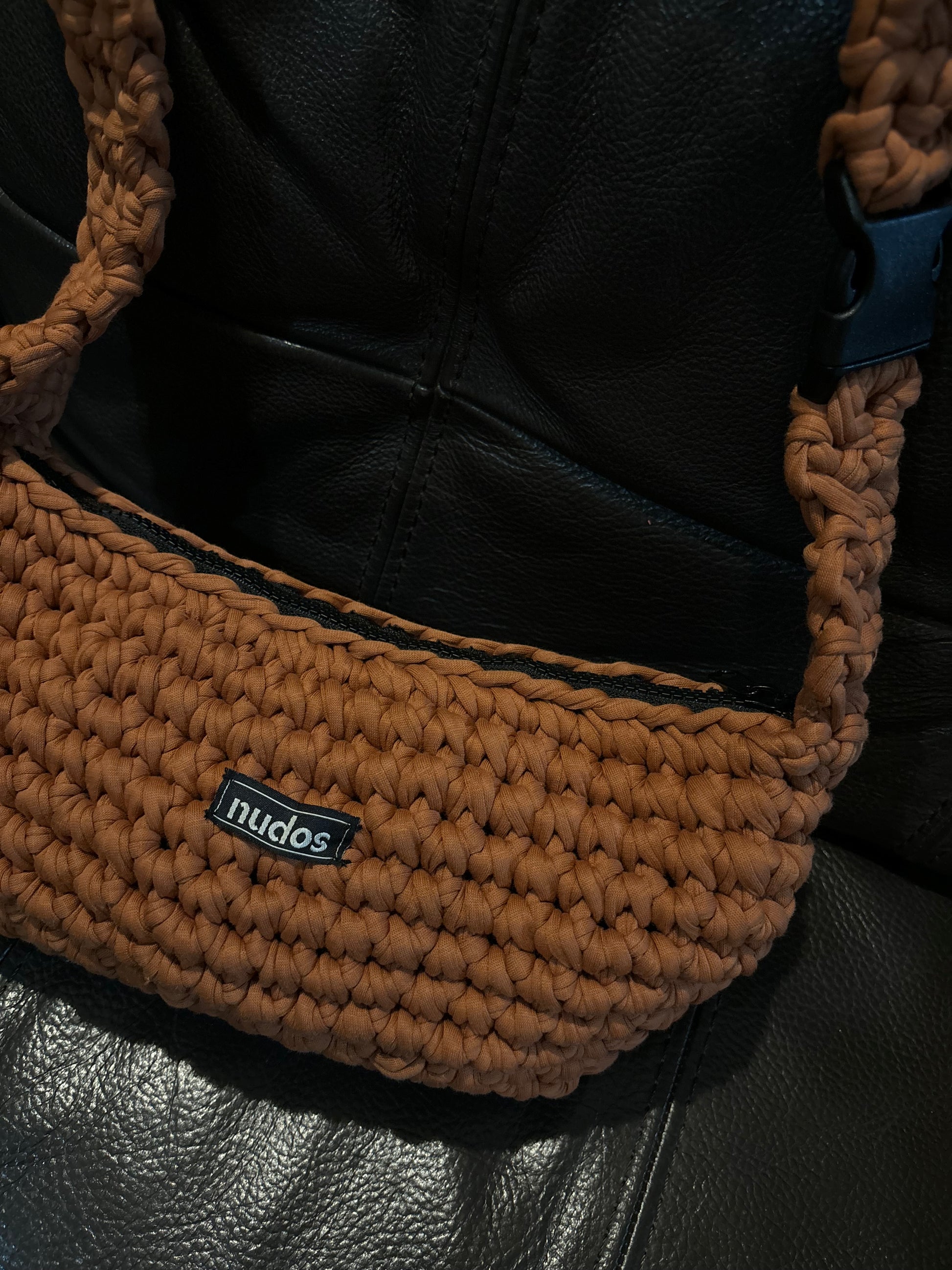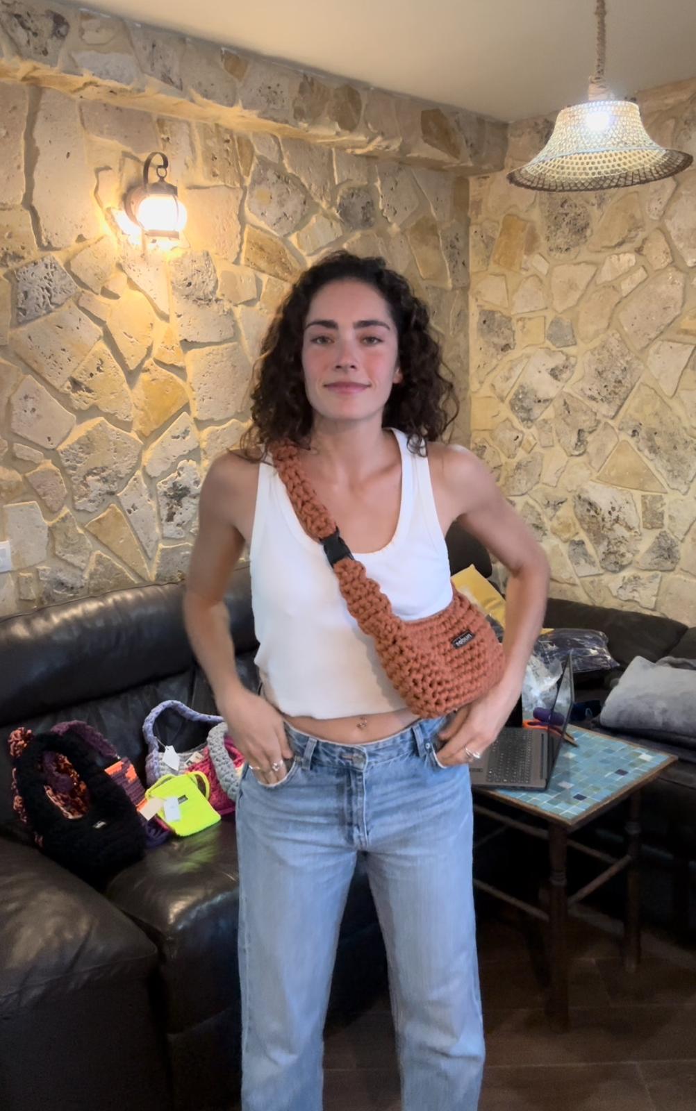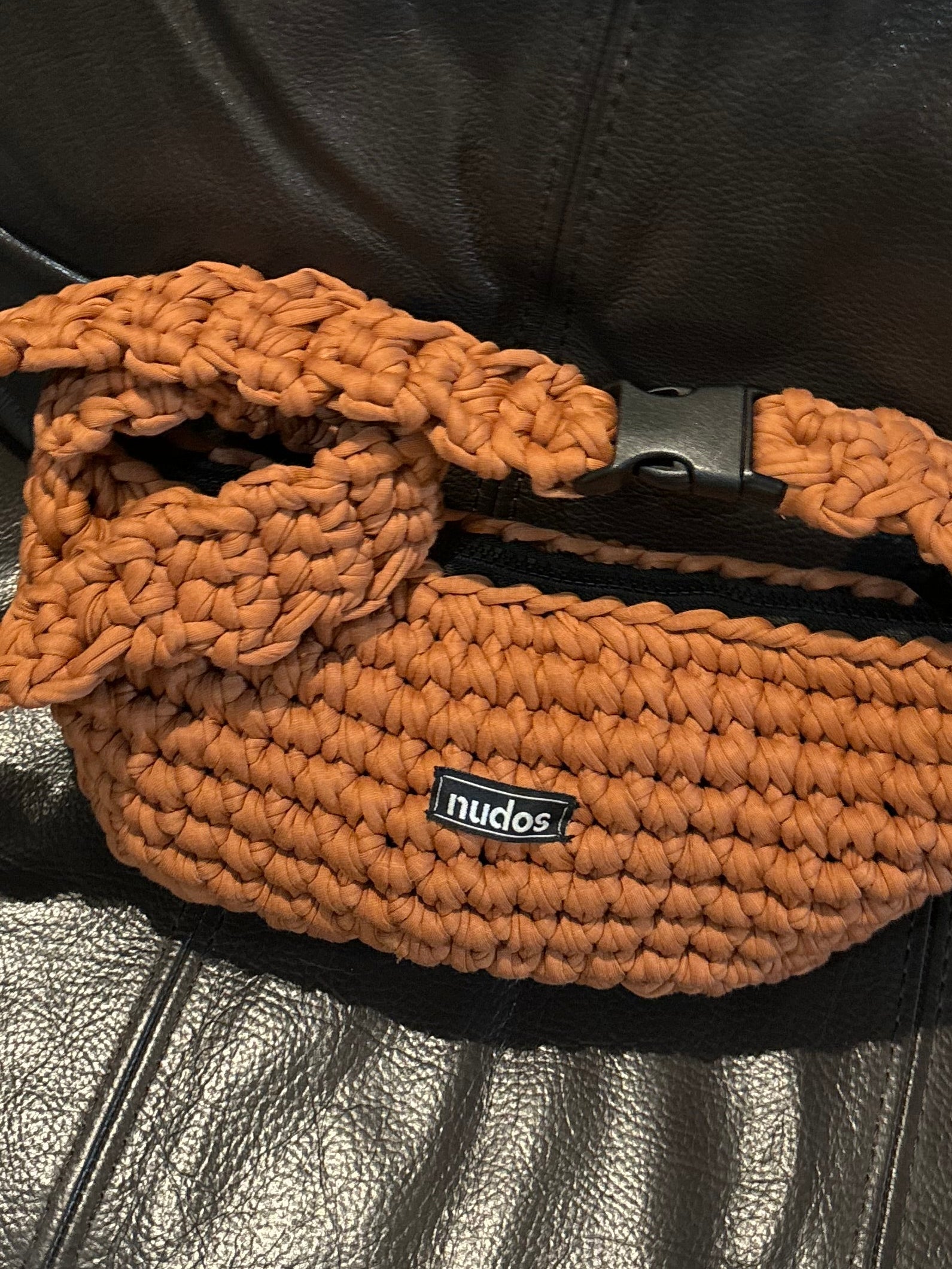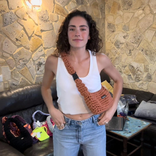 nudos estilo riñonera en color teja