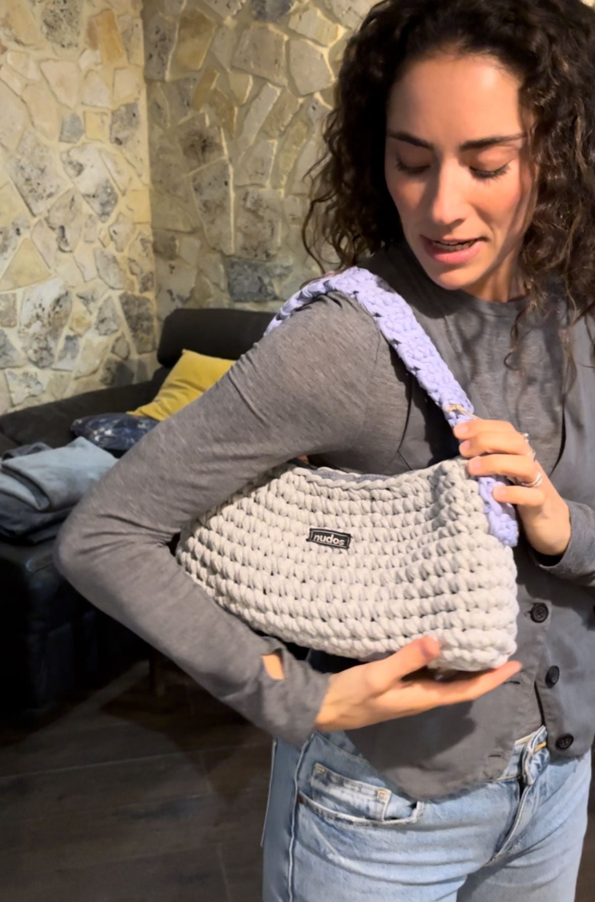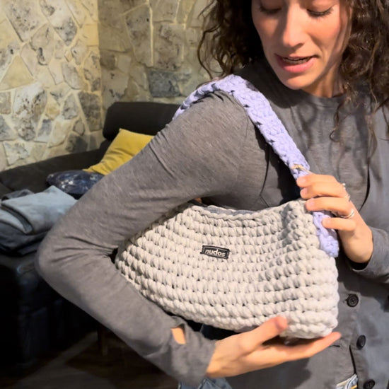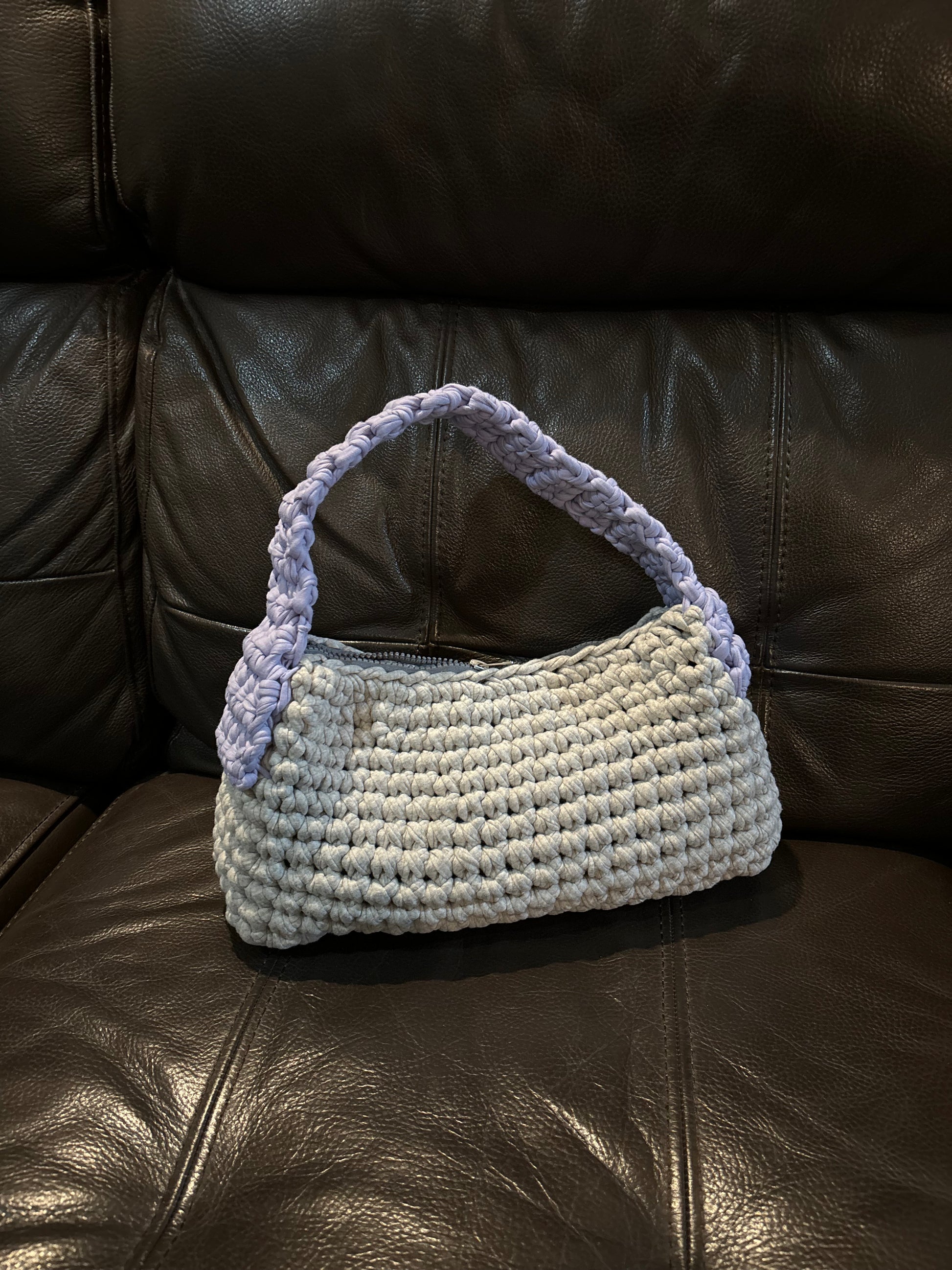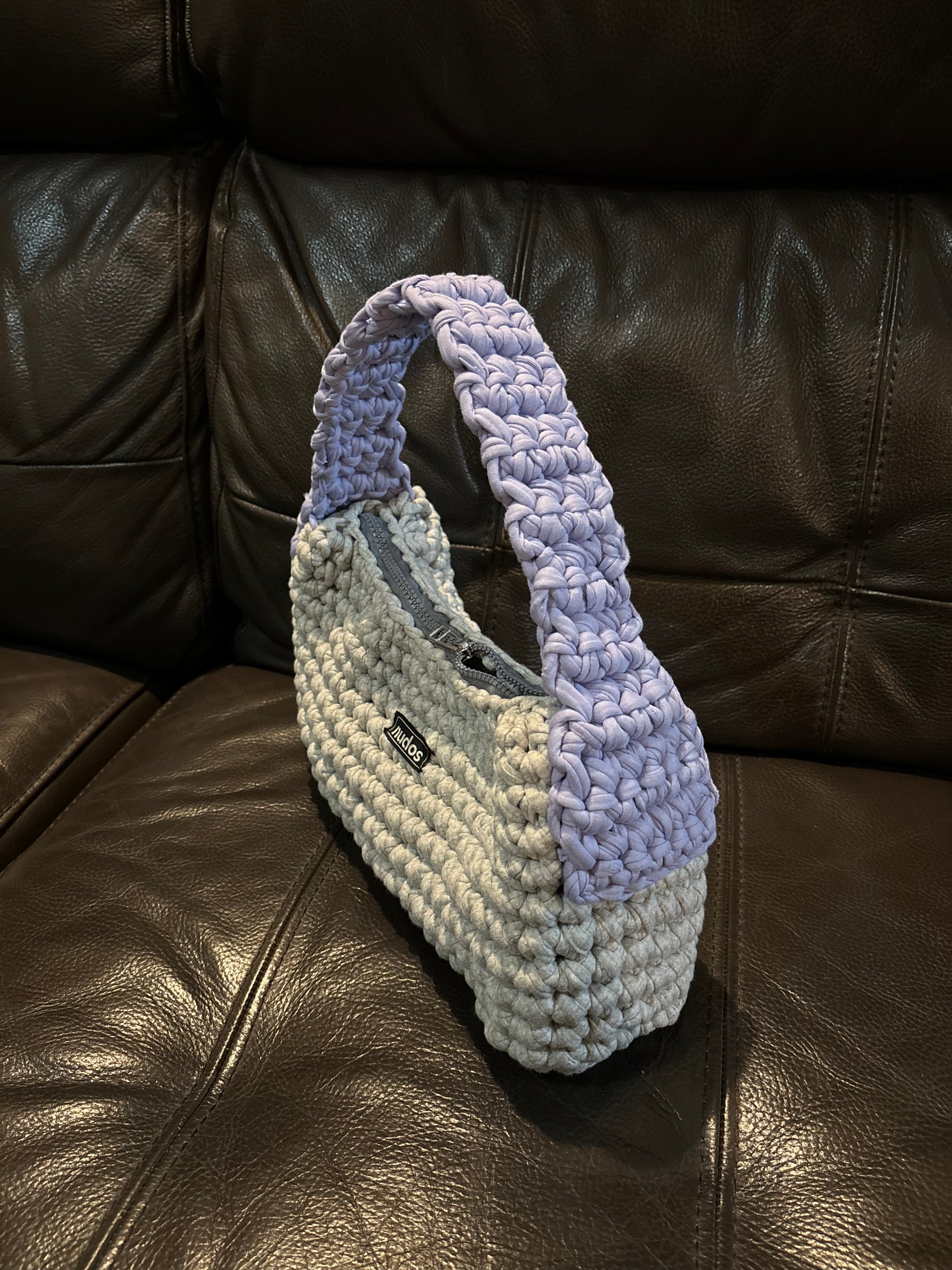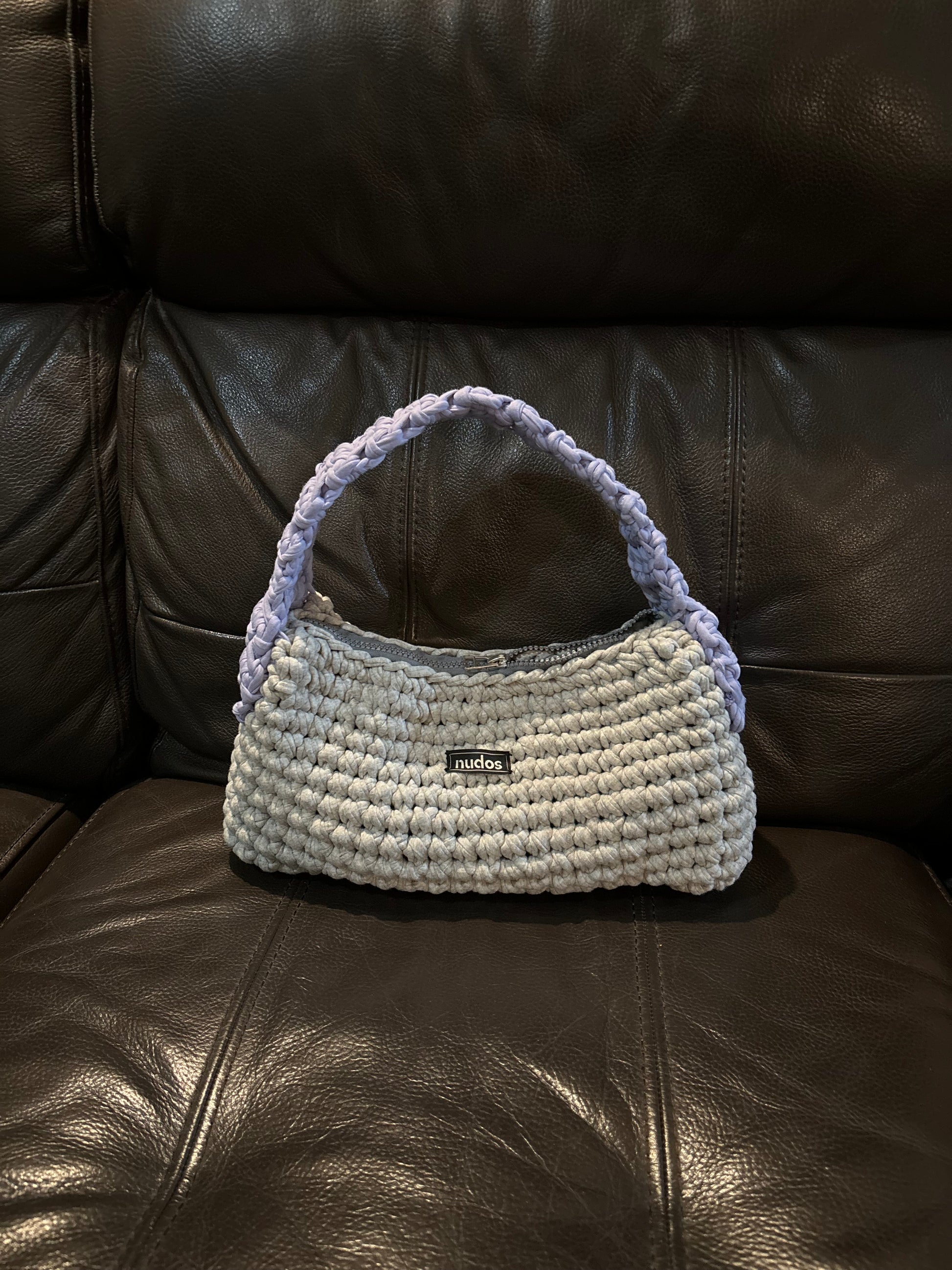 resultó este increíble bolso en color gris claro y lila